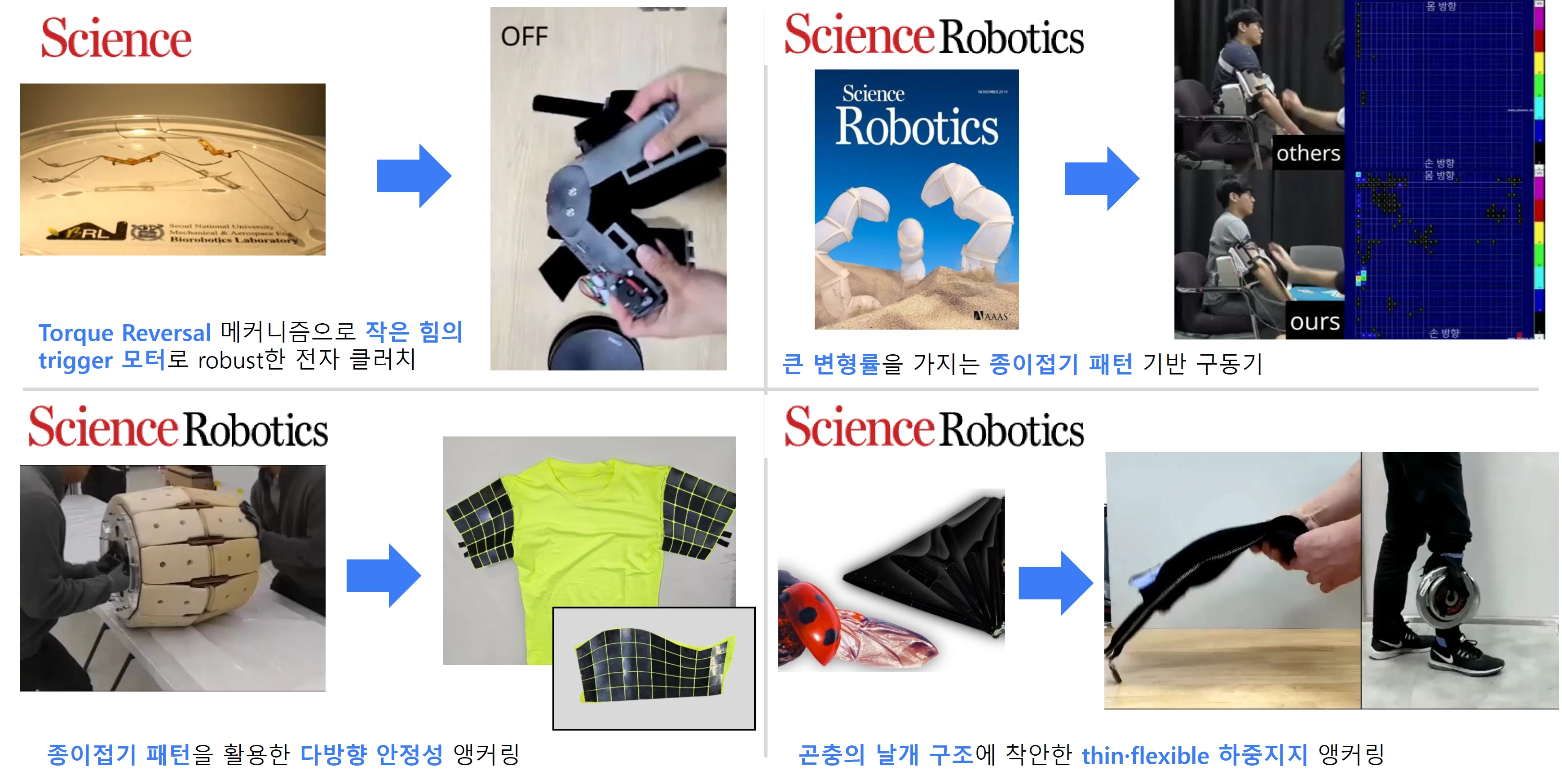 Science와 Science Robotics에 게재된 연구실의 요소 기술들